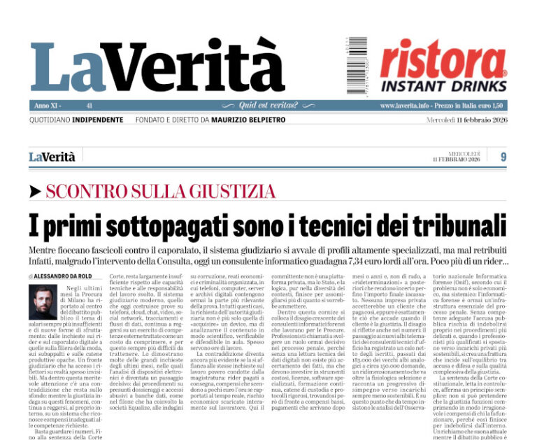 L'articolo di Alessandro Da Rold evidenzia il paradosso dei consulenti informatici forensi , pagati appena 7,34 euro lordi l'ora nonostante l'alta specializzazione richiesta. ONIF sottolinea come tale sotto-remunerazione, unita a ritardi nei pagamenti e costi tecnologici elevati , rischi di allontanare i professionisti più qualificati dai tribunali.
